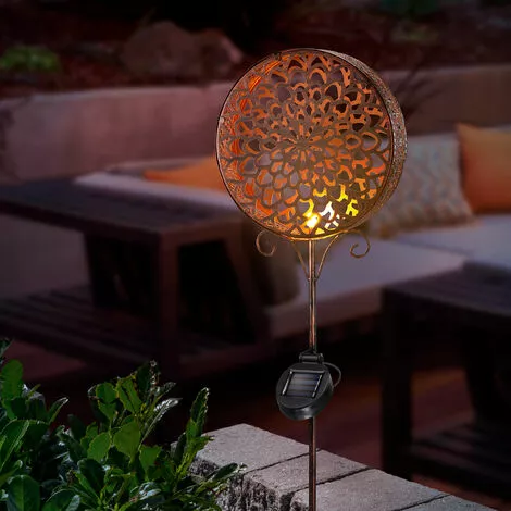 Pour que les beaux moments dans le jardin puissent durer jusque tard dans la nuit, le bouchon de jardin solaire couleur cuivre « Ornament » fournit la bonne lumière, mystérieuse et douillette à la fois. Les ornements fins sont illuminés de manière atmosphérique par une lumière chaude et la prise de jardin fournit le bon éclairage pour une soirée romantique.