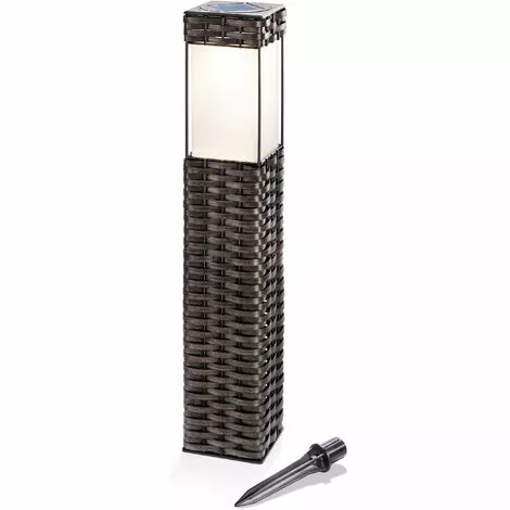 Le nom à lui seul indique clairement quel était lobjectif de conception : Ce lampadaire solaire de 50 cm de haut impressionne par son aspect rotin intemporel. Cela va donc parfaitement – mais pas seulement – avec des meubles de jardin tissés.