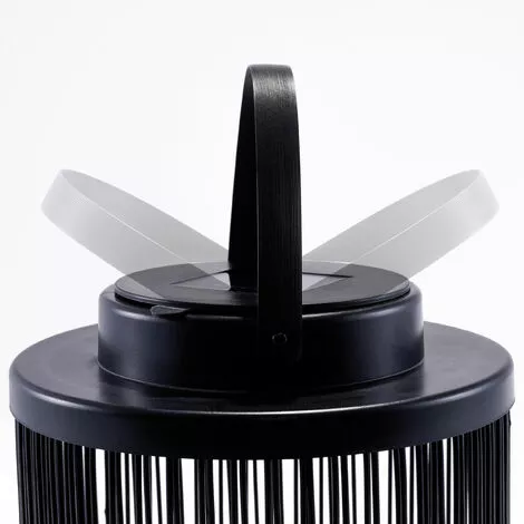 En tant que lampe sur pied ou suspendue, cÂest un petit bijou pour le jardin, le balcon ou la terrasse. Au crĂ©puscule, la lumiĂšre dans la partie supĂ©rieure sÂallume automatiquement et simule une bougie allumĂ©e avec la lumiĂšre jaune scintillante. La grille environnante brise alors la lumiĂšre et crĂ©e de beaux effets dÂĂ©clairage.