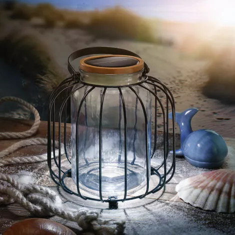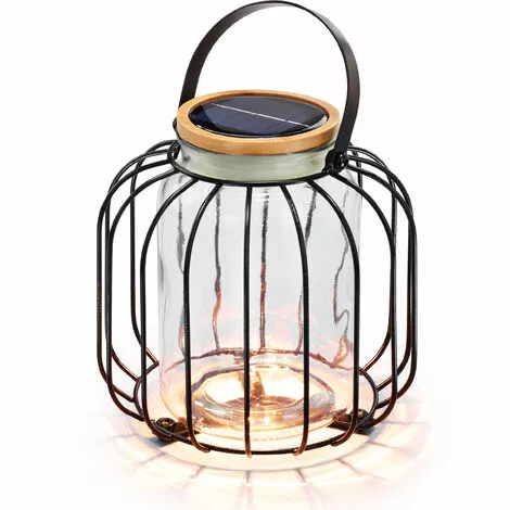 Cette merveille décorative polyvalente nest pas seulement belle à regarder et polyvalente, les matériaux de haute qualité sont également impressionnants. Le corps métallique forme ainsi une structure de base robuste pour la lanterne en verre interne. Le point culminant est le module solaire enfermé dans un couvercle en bambou, qui donne à cette lampe son charme particulier et exotique.