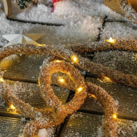 - Corde en fibre naturelle avec 60 LED blanches chaudes incorporées tout autour