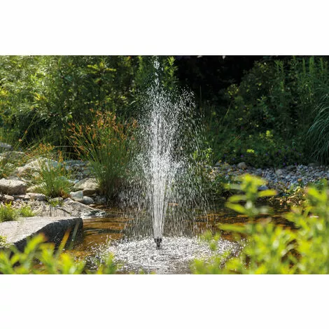 Pompe submersible avec entraînement électronique à faible usure. La livraison comprend 4 tuyaux montants avec 3 embouts de buse (fontaine à 3 étages, cloche à eau ou barboteur en mousse) ou une option de connexion pour un tuyau pour alimenter un jet deau ou un jet deau. Le débit de la pompe est réglable. Livraison avec prise de comptoir avec extrémités de câble ouvertes.