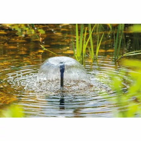 Pompe submersible avec entraînement électronique à faible usure. Un anneau lumineux à LED (accessoire) dans une grande variété de couleurs peut également être connecté via une prise. Le fonctionnement avec éclairage LED nest possible quavec un boîtier de batterie (accessoire) ! La livraison comprend 4 colonnes montantes avec 2 embouts de buse (fontaine à 3 étages ou cloche à eau) et une option de connexion pour un tuyau pour alimenter le cours deau ou les becs deau. Le débit de la pompe est réglable. Livraison avec prise de comptoir avec extrémités de câble ouvertes.